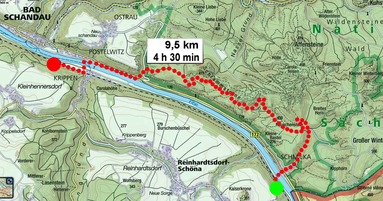 Als Ausgangspunkt für unsere Wanderung auf dem Elbleitenweg war in unserem Hikeline Wanderführer „Elbsandsteingebirge“ – Die schönsten Wanderungen in der Sächsischen Schweiz, S. 93-95 (Auflage: 4. Auflage, Sommer 2019, ISBN: 978-3-85000-812-9) der S-Bahn-Haltepunkt „Krippen“ angegeben. Für die Fahrt dorthin benötigten wir 25 Minuten.
