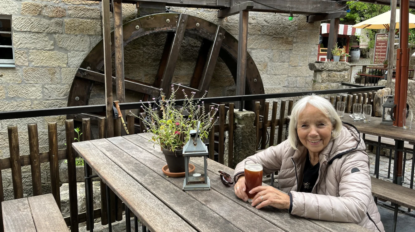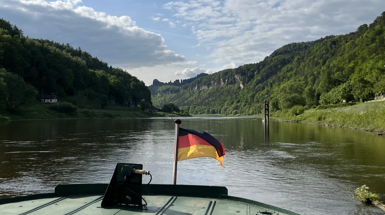 Auf Anraten eines Ehepaares, das wir unterwegs getroffen hatten und das in Schmilka wohnte, tranken wir in der Schmilk’schen Mühle ein Bernstein vom Fass. Dann mussten wir uns aber auch schon sputen, denn die S-Bahn ging ab Bahnhof Schmilka-Hirschmühle um 17:35 Uhr. Der Fährmann meinte beim Einsteigen, das würden wir nicht mehr schaffen, kniff uns aber dabei ein Auge zu. Übrigens liegt der Fähranleger von Schmilka nur 450 Meter von der Grenze Tschechiens entfernt.