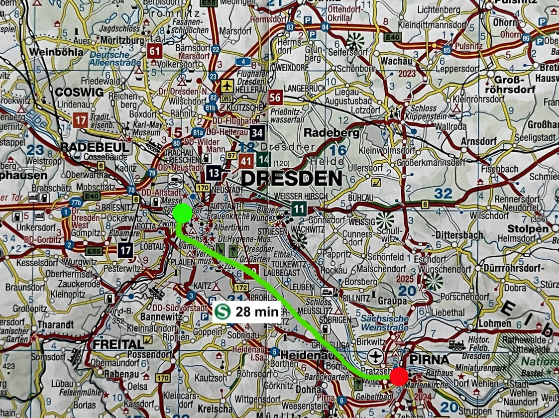 Bei wunderbarem Wetter hatten Mary und ich entschieden, die S-Bahn nach Dresden zu nehmen. Mit unseren Gästekarten fuhren wir von Pirna bis Heidenau kostenfrei. Ab Heidenau mussten wir bis Dresden Mitte zuzahlen.
