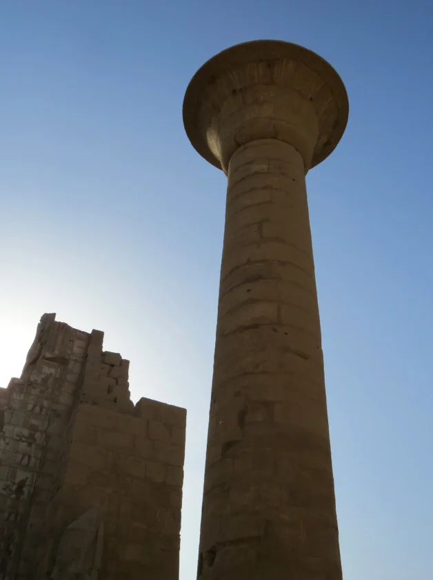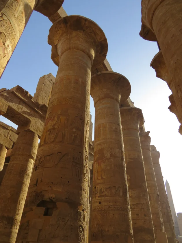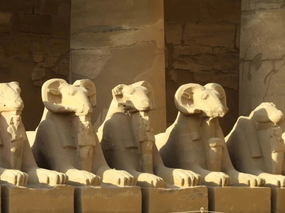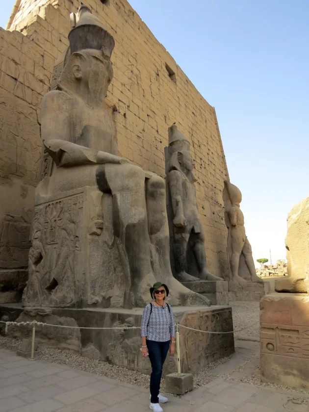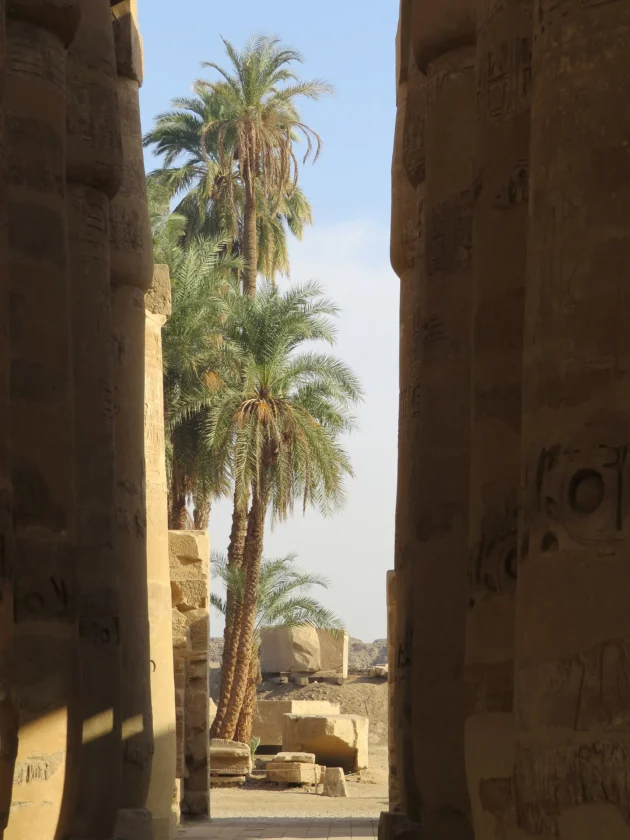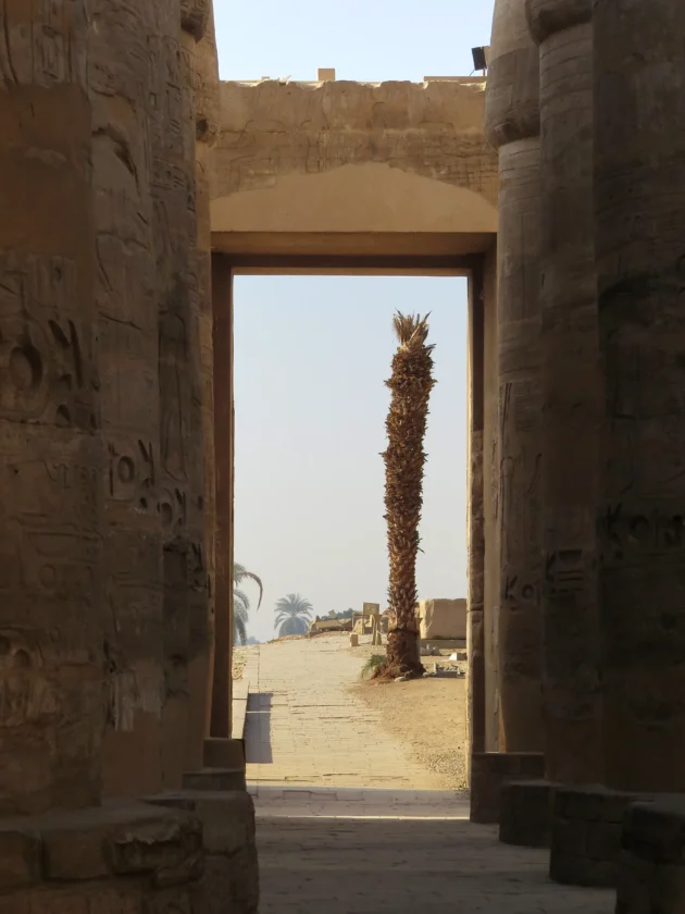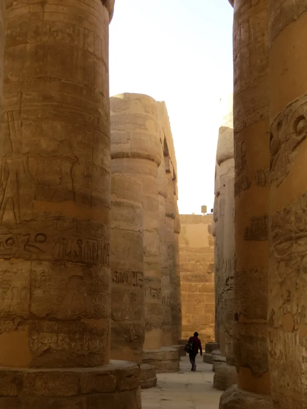Für die 16 Kilometer bis zum Karnak-Tempel benötigte unser Bus 25 Minuten. Einen Teil der Strecke fuhren wir an einem Kanal entlang. Ehe wir schließlich die beeindruckende Anlage betraten, sahen wir noch, wie langsam einige Heißluftballons in den dunstigen Himmel aufstiegen. Mittlerweile war man auch erfreut darüber, dass wir um 8 Uhr tatsächlich zu den ersten Besuchern gehörten.