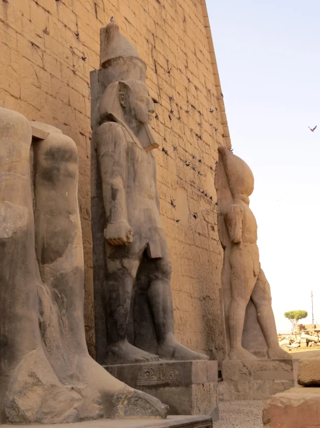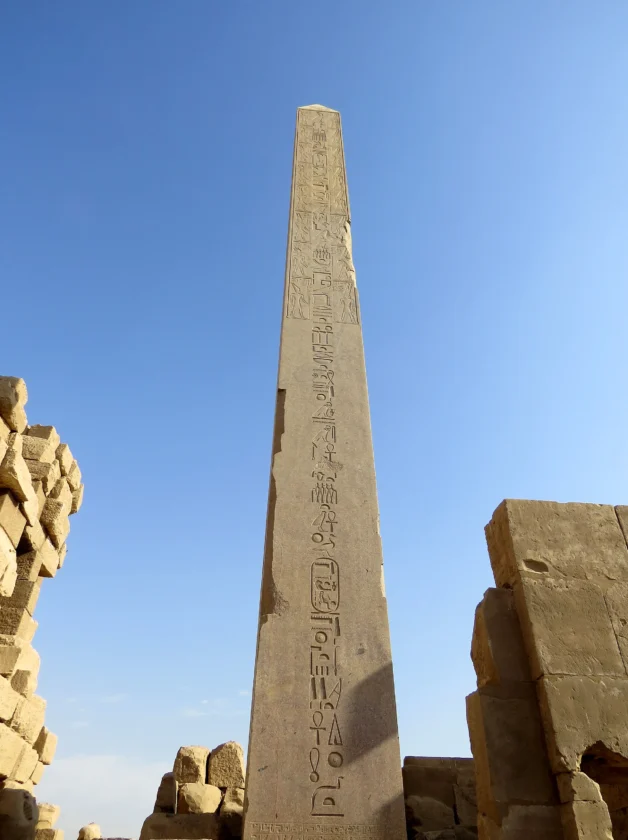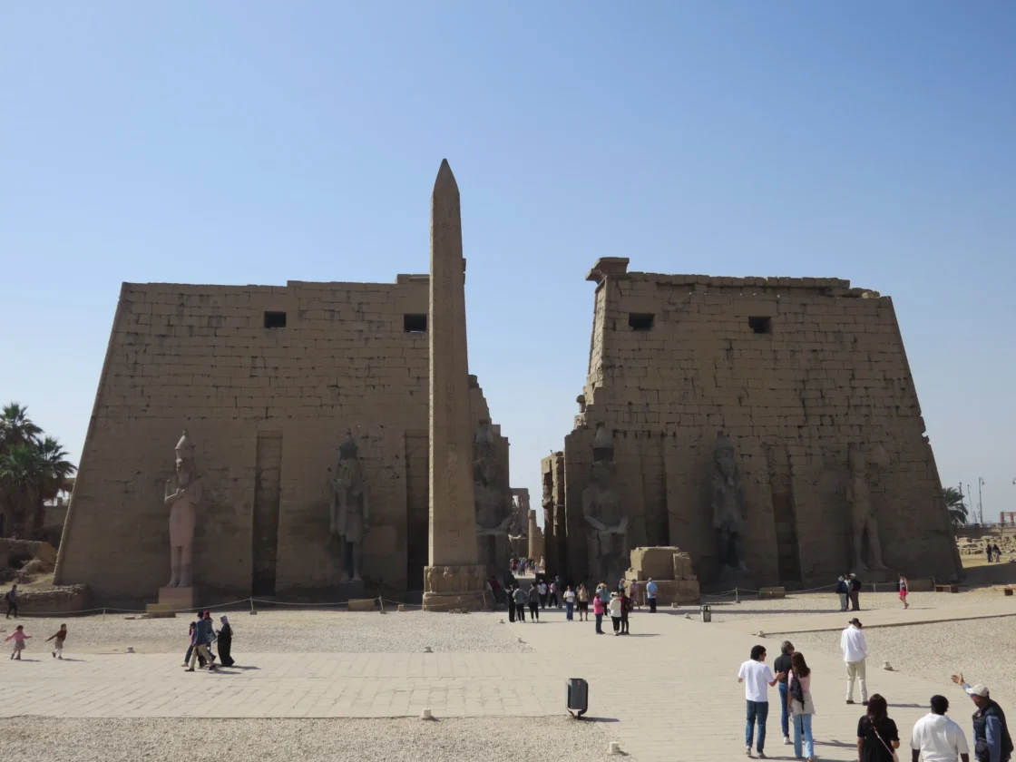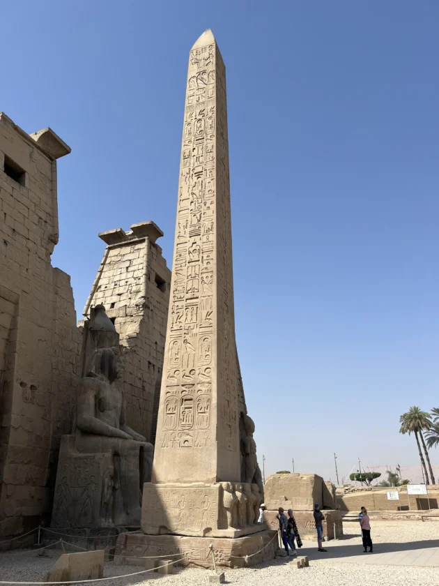 Vor dem großen Pylon waren in der Antike zwei Obelisken Ramses II. aufgestellt. Heute ist jedoch nur noch ein Obelisk vorhanden. Der zweite Obelisk steht als Geschenk von Sultan Muhammad Ali an den König von Frankreich seit 1836 auf dem Place de la Concorde in Paris. Im Austausch erhielt Muhammad Ali eine Turmuhr für die Alabastermoschee in Kairo.