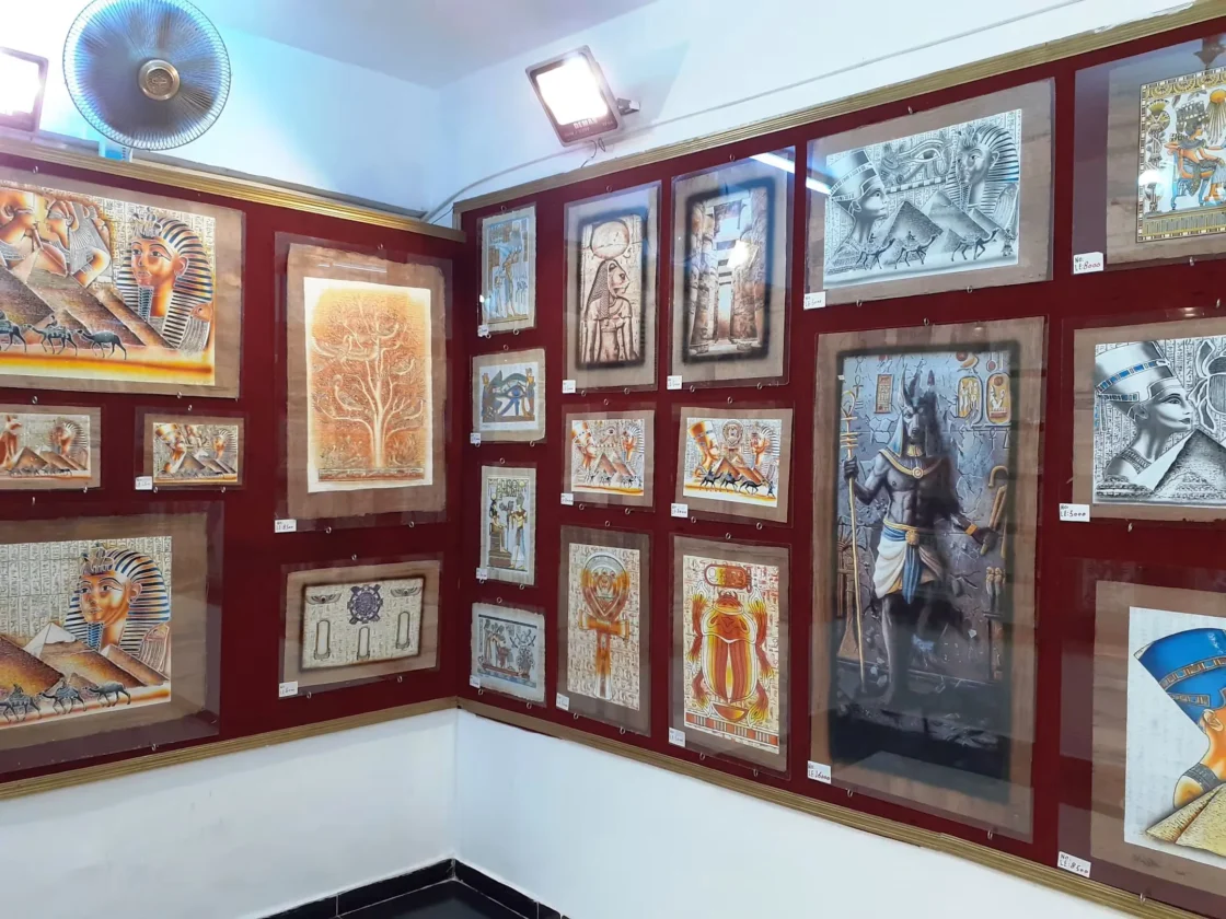 Die Ausstellung war ziemlich groß, und erfreulicherweise wurde man nicht zum Kauf gedrängt. Ehe wir zum nahegelegenen Luxor-Tempel aufbrachen, blieb genügend Zeit, um gegebenenfalls eines der wirklich schönen auf Papyrus gemalten Bilder zu kaufen.