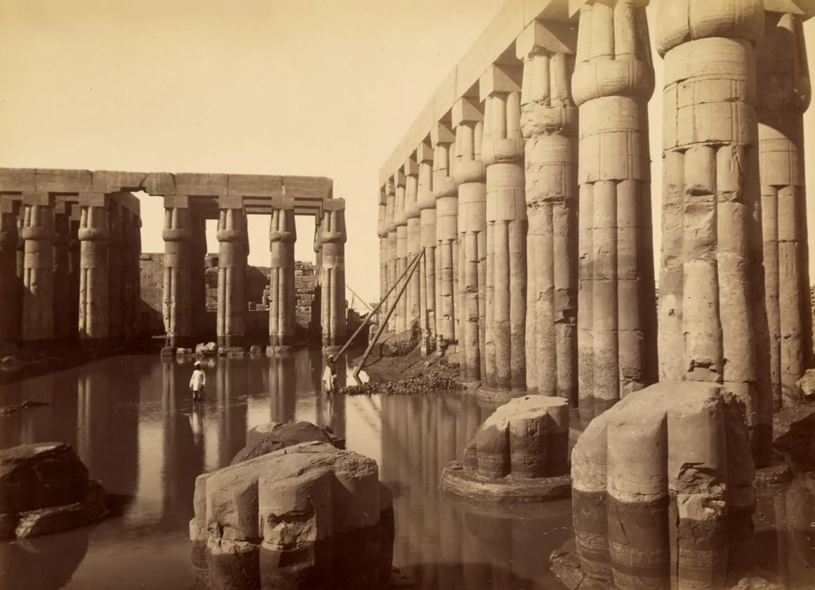 Wie schon im Karnak-Tempel waren auch hier in Luxor die Säulenhallen und -reihen beeindruckend in ihrer Intensität. Das vierte Foto vom Ende des 19. Jh. verdeutlicht, wie die Anlage gelegentlich vom Nil überschwemmt wurde.